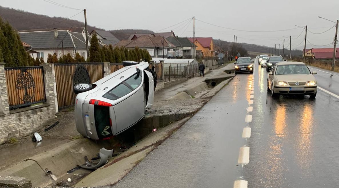 12.12.2021Accident în Șintereag. O mașină s-a răsturnat, trei persoane au ajuns la spital (FOTO)