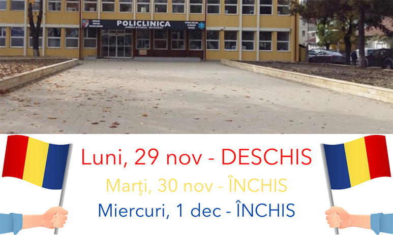 În minivacanța de săptămâna viitoare, Policlinica este închisă doar în zilele de marți și miercuri! Chiar dacă și ziua de luni – 29 noiembr...