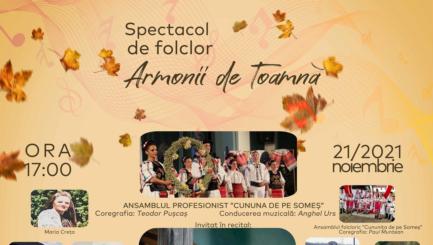 În data de 21 noiembrie 2021, va avea loc un spectacol de folclor ,,Armonii de Toamnă” la Palatul Culturii Bistrița. Spectacolul va avea lo...