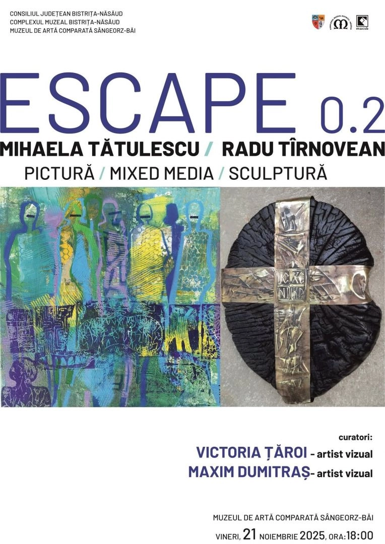 Vineri, 21 noiembrie, ora 18, 00 la Muzeul de Artă Comparată Sângeorz-Băi. Escape 0.2 - Mihaela Tătulescu și Radu Tîrnovean.