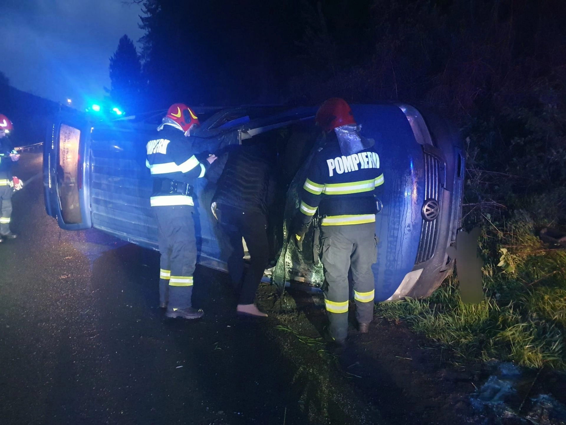 Un echipaj de pompieri, un echipaj de prim ajutor SMURD, un echipaj SAJ si echipajul de terapie intensivă mobilă SMURD au intervenit la un accide...