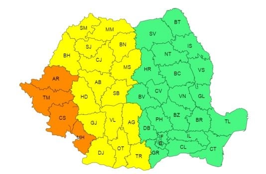 AVERTIZARE METEOROLOGICĂ - COD GALBEN de caniculă în judeţul Bistriţa-Năsăud.