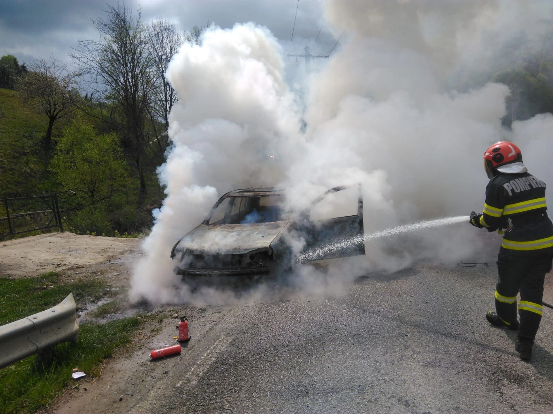 Un autoturism care circula pe DJ 172D, între localitățile Strâmba și Ilva Mică, a fost cuprins, vineri, de un incendiu.