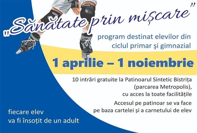 Prin intermediul programului, aproximativ 8.000 de elevi bistrițeni vor fi încurajați să facă mișcare beneficiind de 10 intrări gratuite la patin...
