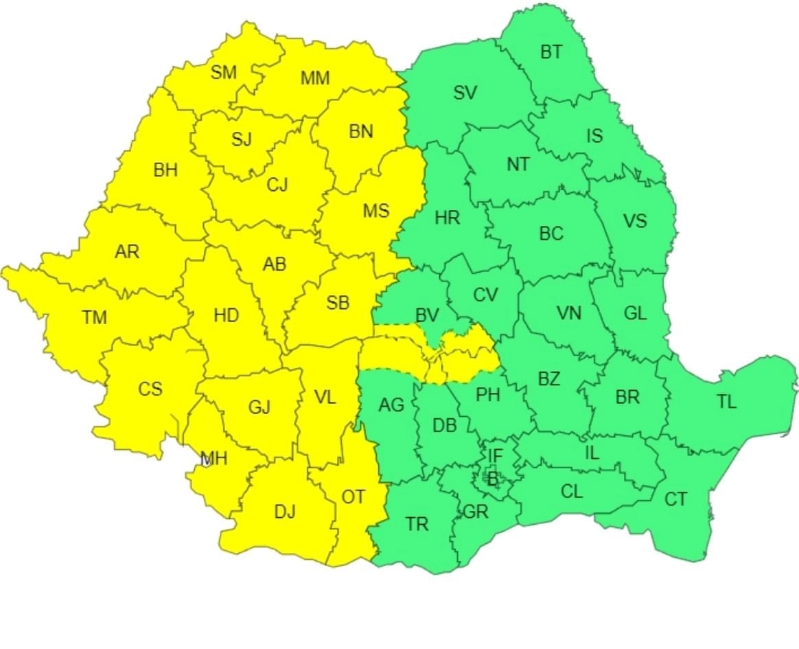 A fost emisă o avertizare meteo cod galben.