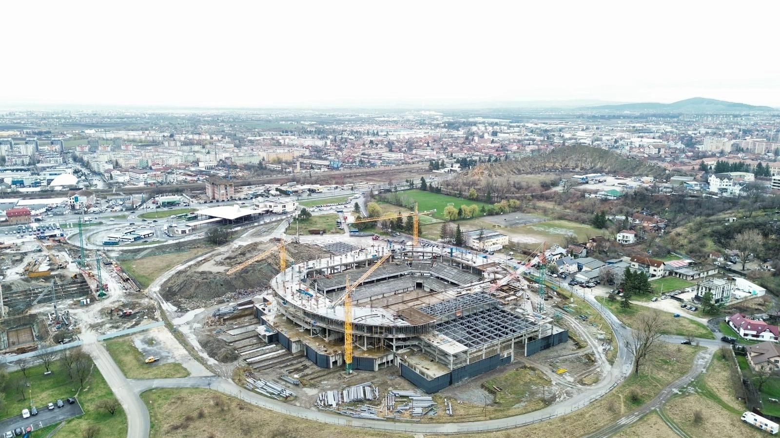 Lucrările la cea mai mare sală polivalentă din România, construită de compania bistrițeană MIS Grup, avansează.