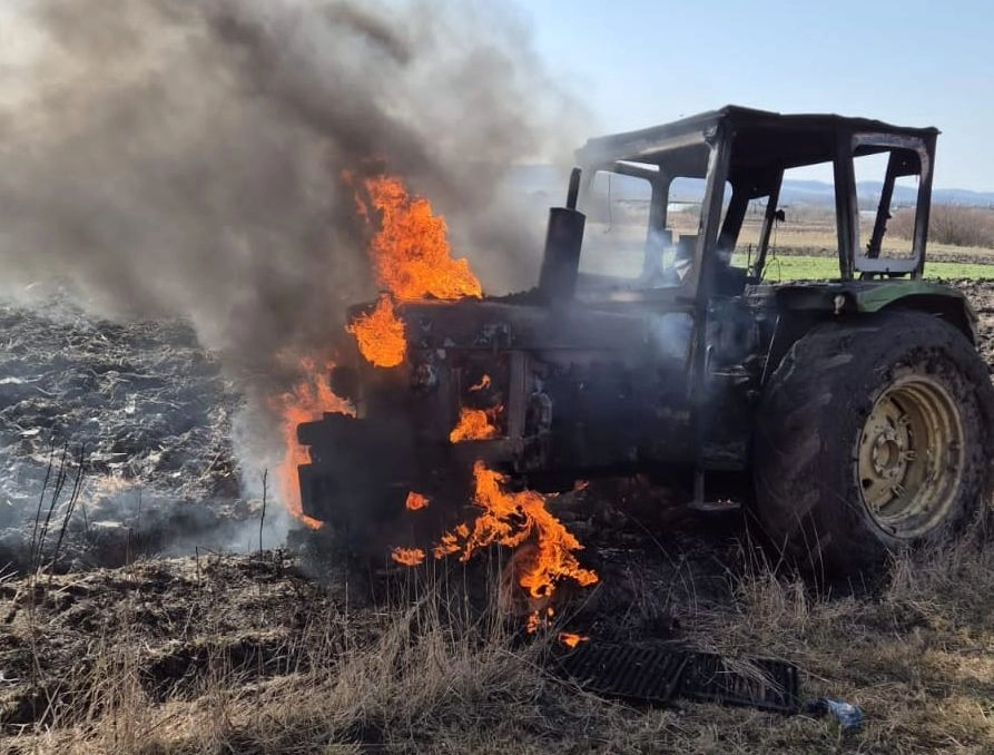 Pompierii militari au intervenit astăzi la un incendiu izbucnit la un tractor pe raza localității Șintereag.