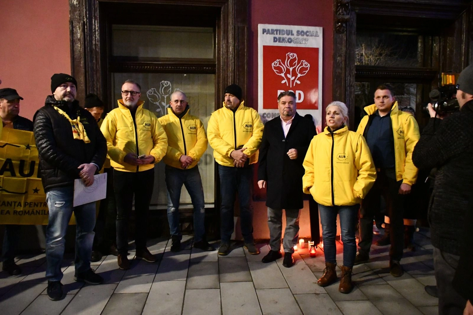 07.02.2024Protest în faţa sediului PSD din Bistriţa. Reprezentaţii AUR au venit cu cruci şi lumânări (VIDEO)
