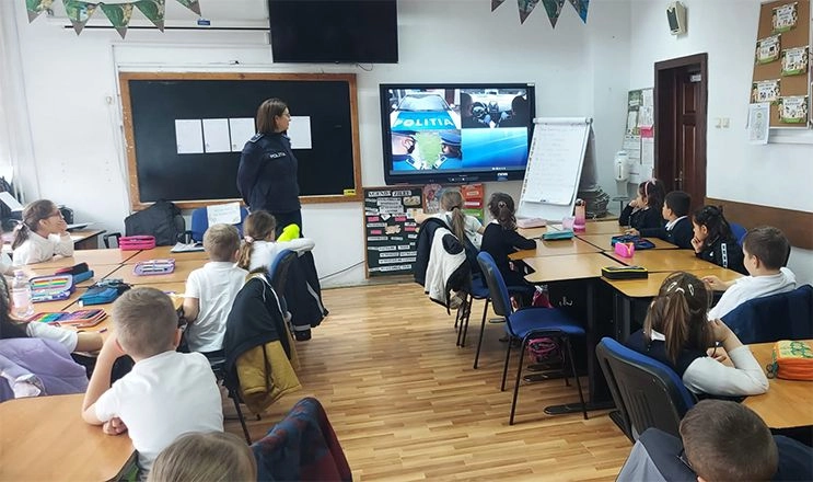 Temele vizate de polițiști sunt siguranța în drum spre școală, la școală, în mediul on-line, acasă, dar și în perioada vacanței