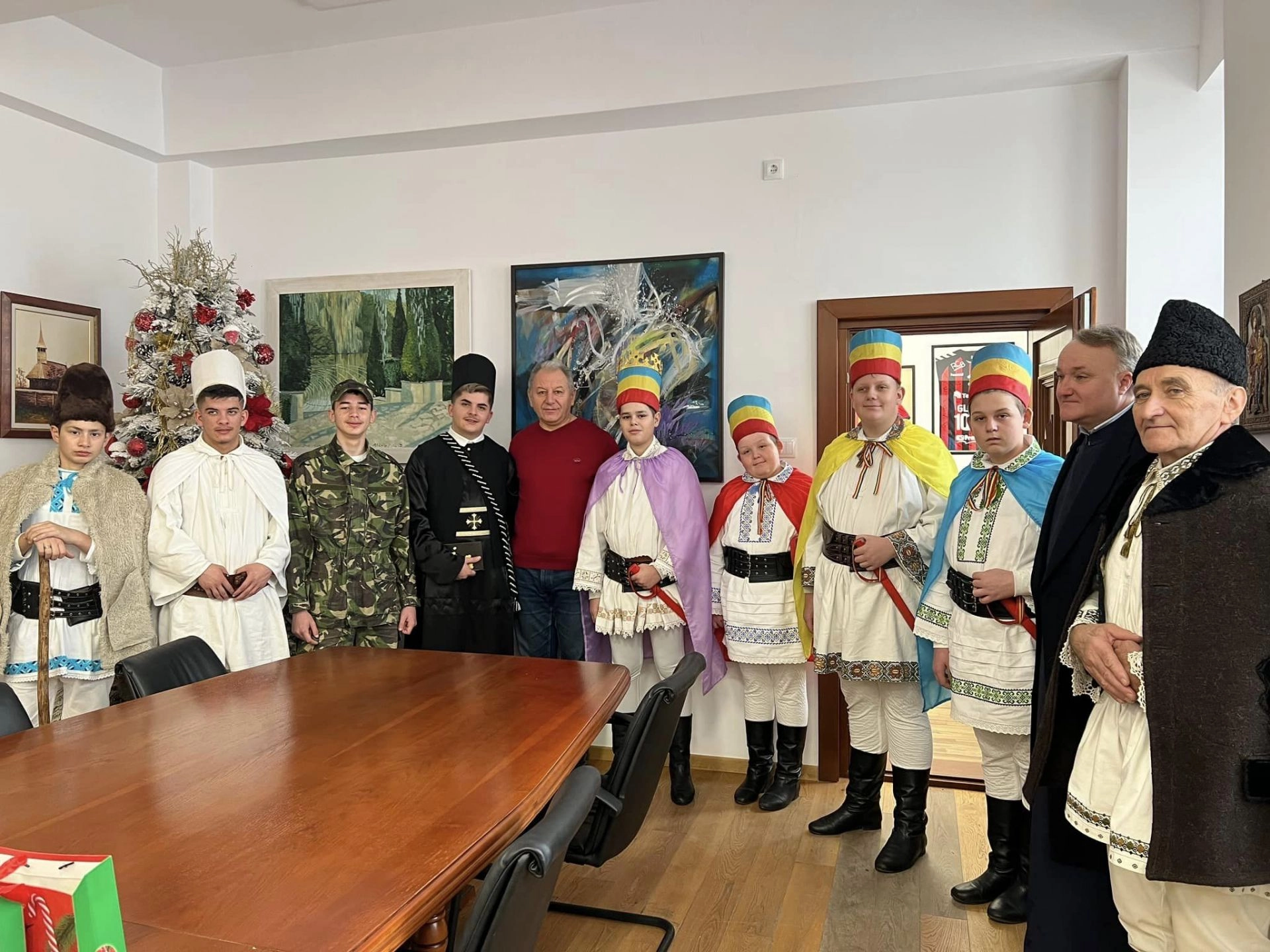 Președintele Consiliului Județean, Emil Radu Moldovan, a primit colindători din satul său natal, Chintelnic.