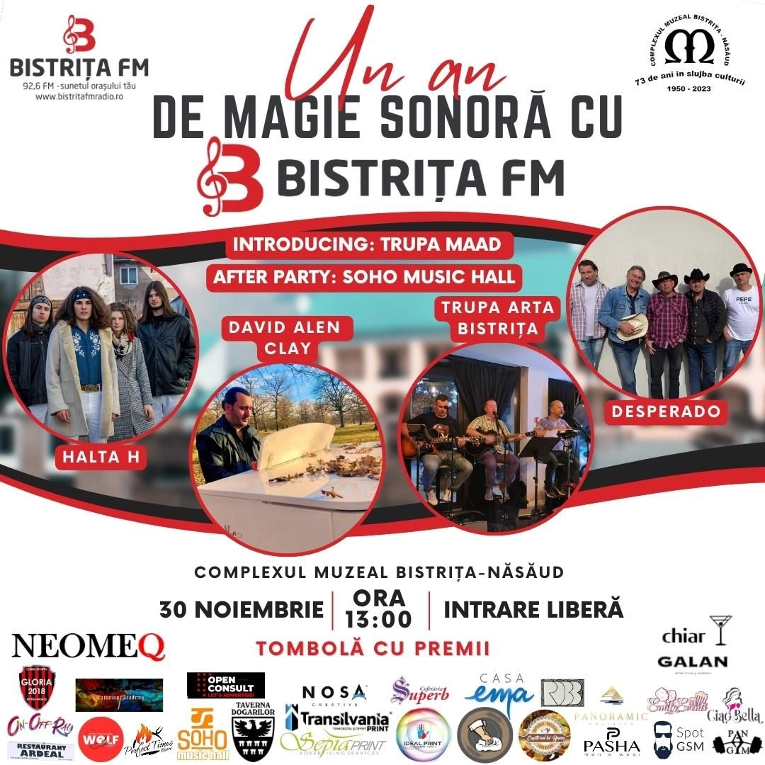 Bistrița FM – 92,6 FM – singurul post de radio 100% local urban, aniversează pe data de 30 noiembrie, de Sf. Andrei, un an de emisie.