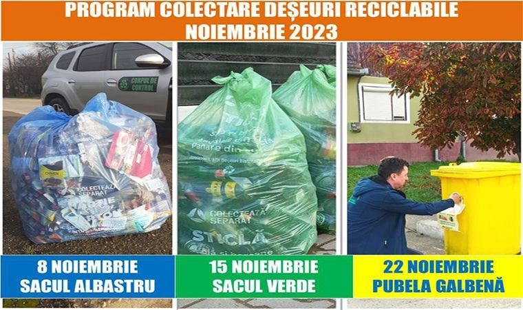 Programul de colectare a deșeurilor reciclabile, pentru Municipiul Bistrița și localitățile componente, în luna NOIEMBRIE 2023, începe de săptămâ...