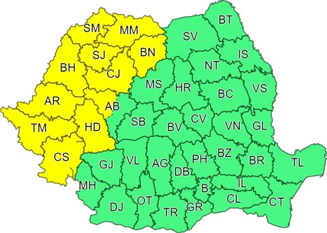 14.09.2023Atenționare meteo - Cod galben de instabilitate atmosferică în Bistrița-Năsăud