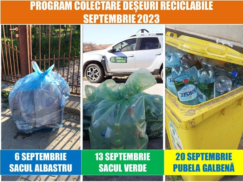 Vezi care este programul de colectare a deșeurilor reciclabile în luna SEPTEMBRIE 2023 pentru Municipiul Bistrița și localitățile componente!...