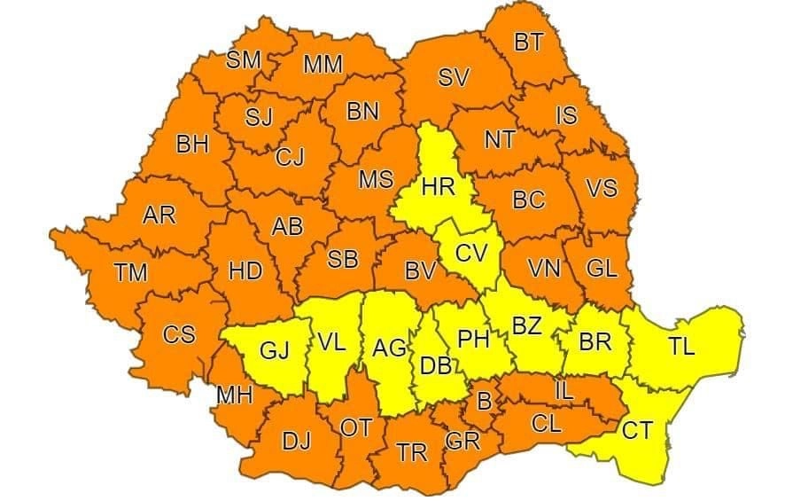 Administratia Nationala de Meteorologie RA a emis avertizări Cod Galben și Cod Portocaliu de caniculă în toată țara.