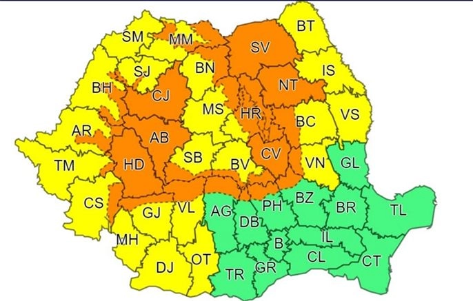 Atenționări meteorologice ANM: Cod galben și cod portocaliu