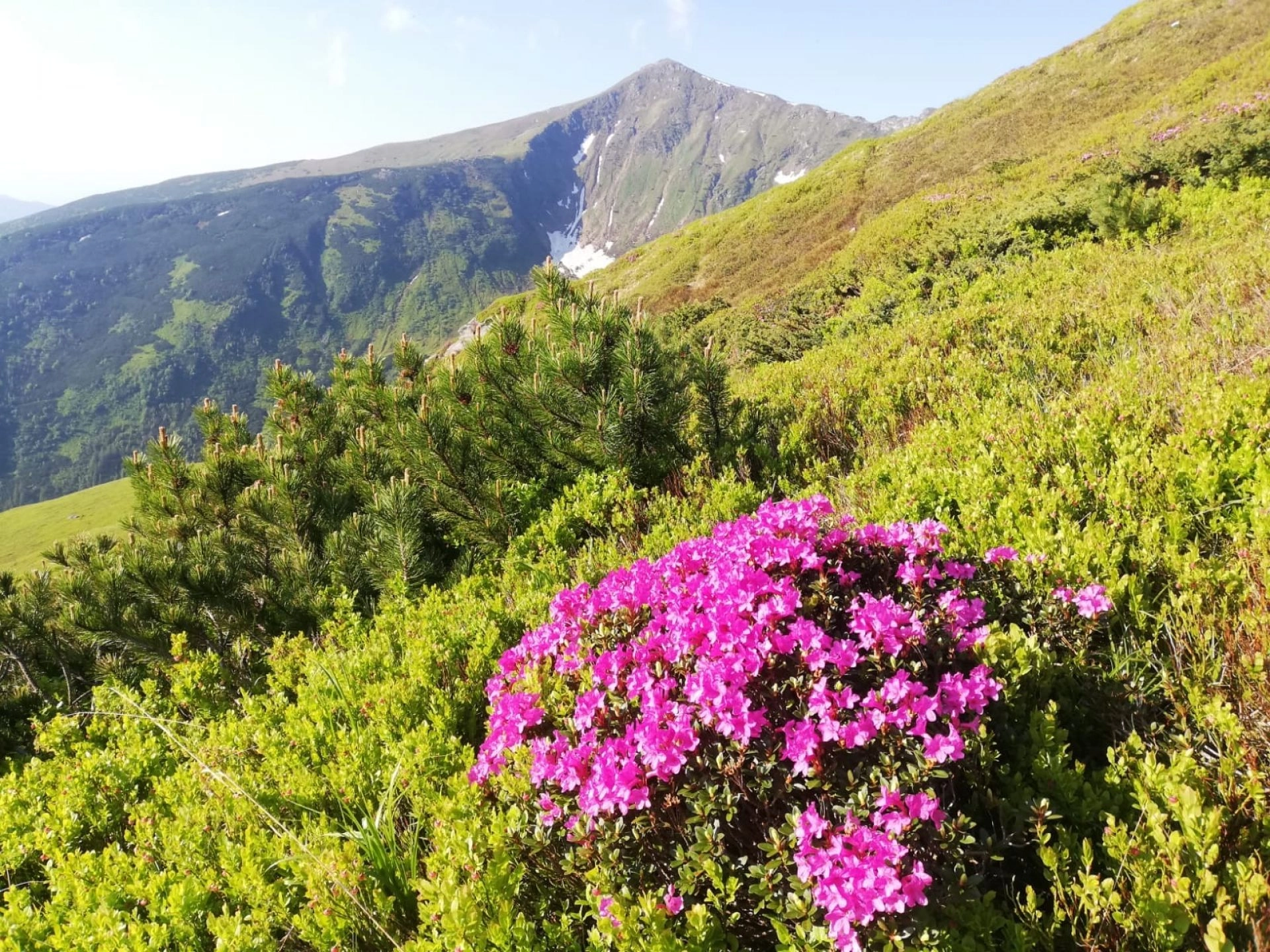 Peisaje frumoase în Parcul Național Munții Rodnei, unde puteți admira florile frumoase și ultimele urme de zăpadă.