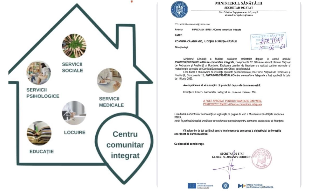 21.06.2023Proiect important pentru comuna Căianu Mic. Centru Comunitar Integrat, finanțat prin PNRR