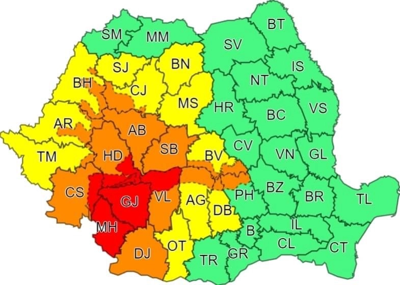 AVERTIZARE DE FENOMENE METEOROLOGICE PERICULOASE: COD ROȘU.