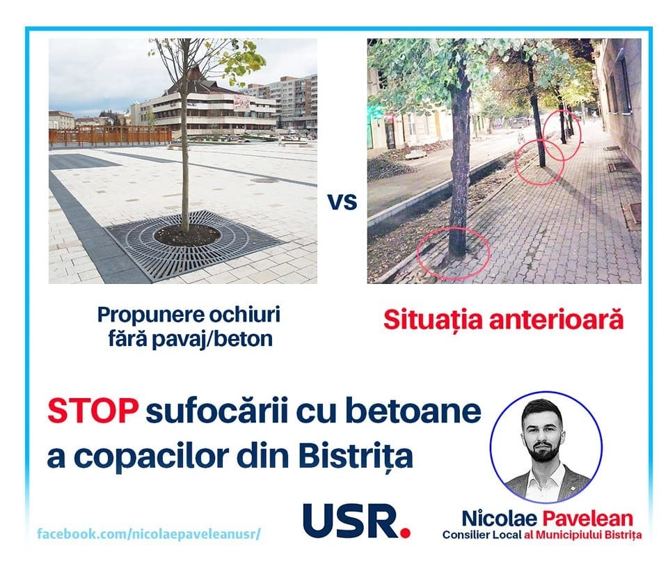 Consilierul USR, Nicolae Pavelean, a depus la Primăria Bistrița o solicitare pentru amenajarea unor ochiuri de minim 1 [m] x 1 [m] fără pavaj sau...