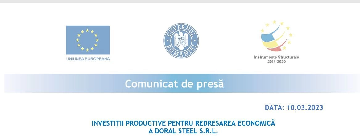 INVESTIȚII PRODUCTIVE PENTRU REDRESAREA ECONOMICĂ A DORAL STEEL S.R.L.