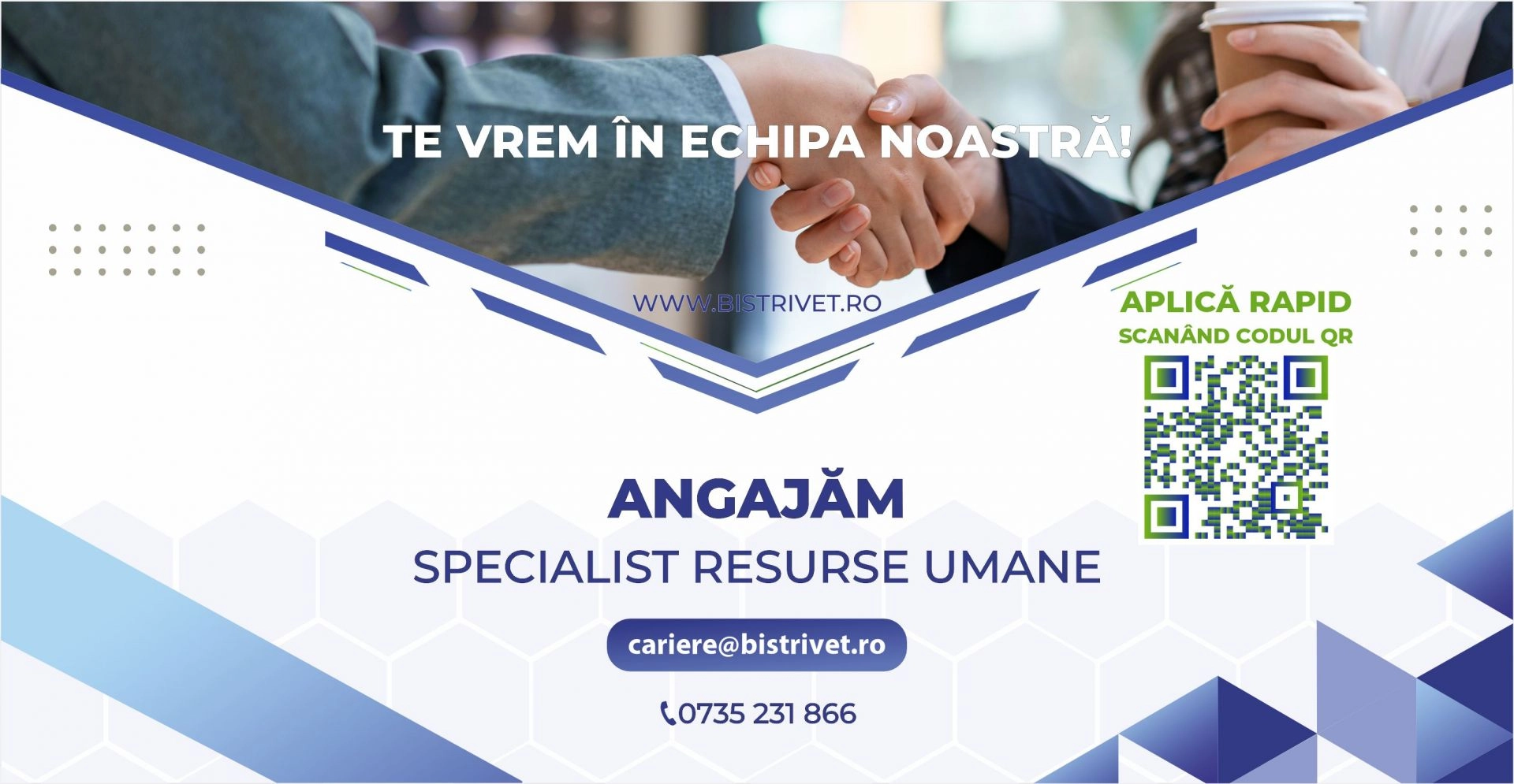 Dorești un job sigur și prosper? BISTRI-VET recrutează o persoană pentru poziția de SPECIALIST RESURSE UMANE!