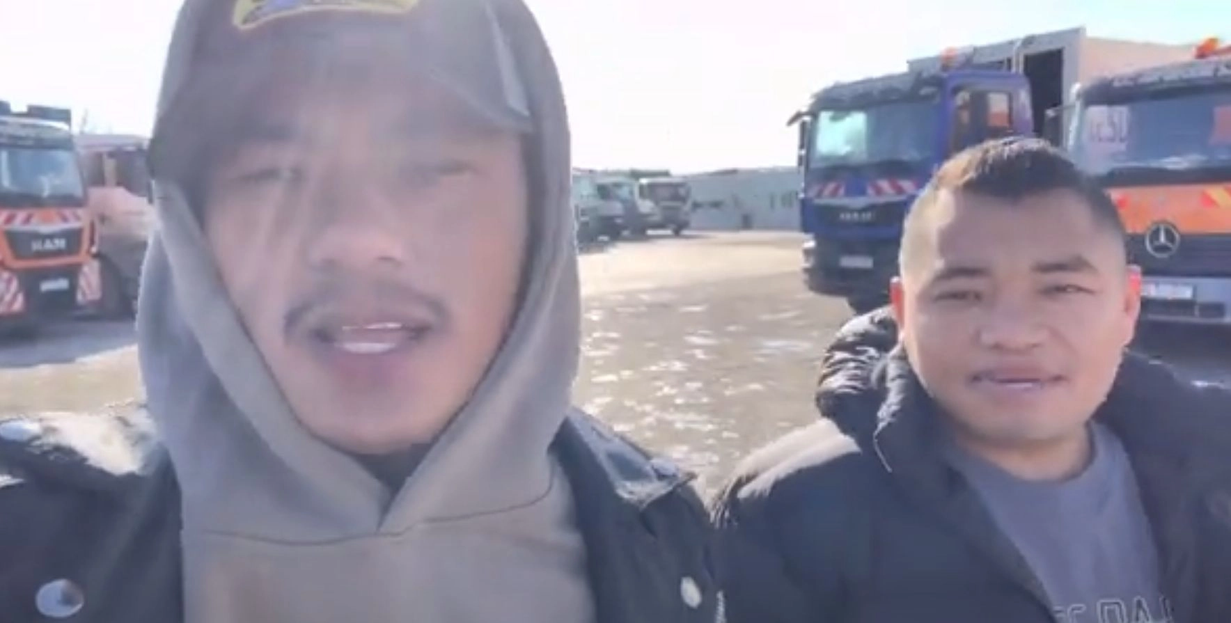 Mai mulți bărbați din Nepal apar într-un clip video, pe drumul de la București la Bistrița.