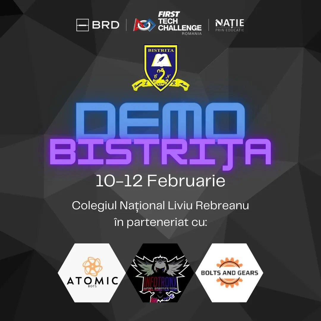 În perioada 10 - 12 februarie 2023, va avea loc la Colegiul Național „Liviu Rebreanu” Bistrița concursul de robotică Demo Bistrița.