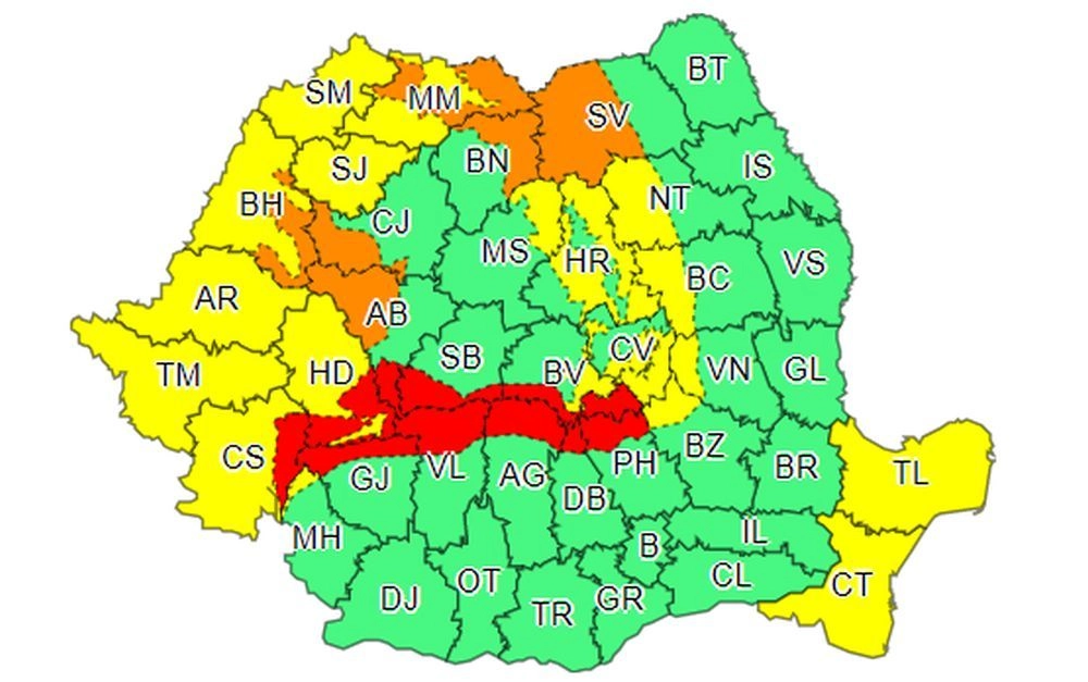 Meteorologii au emis un cod portocaliu de vreme rea pentru mai multe județe din țară, printre care și Bistrița-Năsăud.