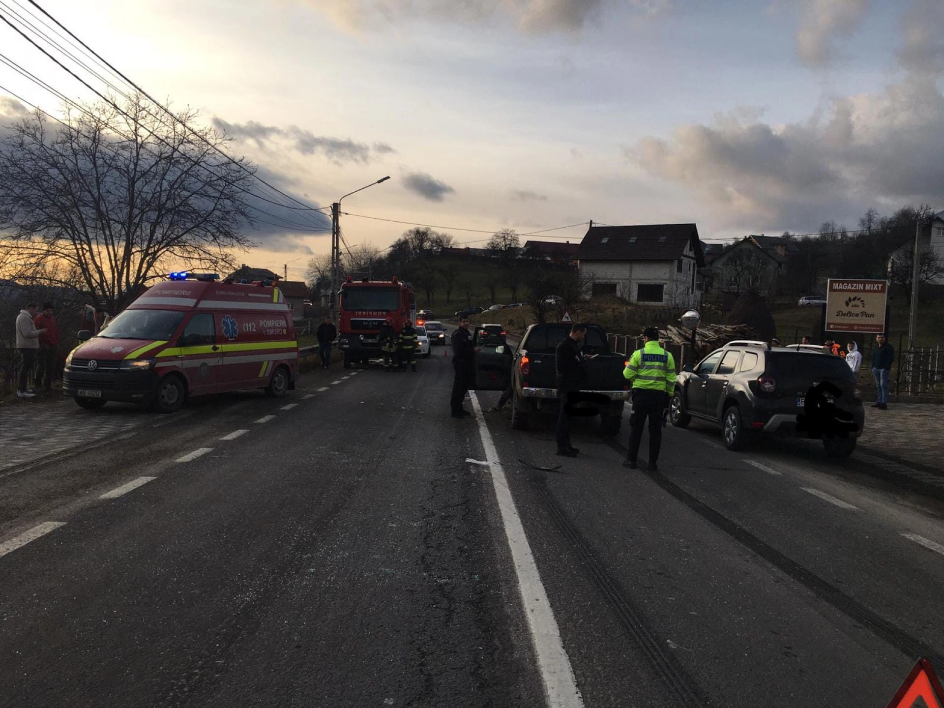 În urma accidentului, o femeie, pasageră în autoturismul condus de bărbatul de 40 de ani, a fost rănită și transportată la spital