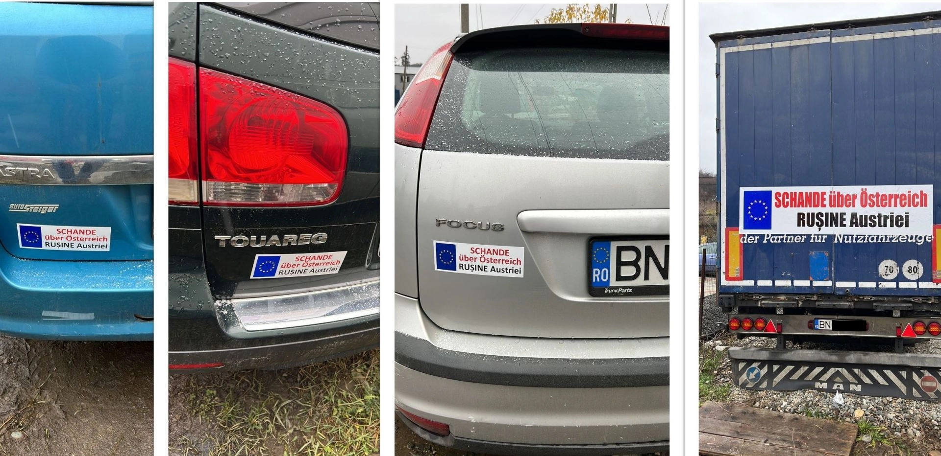 12.12.2022PROTEST. Bistrițenii și-au lipit pe mașini stickere cu "Rușine Austriei!" (FOTO)