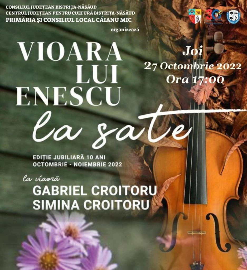 22.10.2022Vioara marelui muzician român, GEORGE ENESCU, va răsuna în Căianu Mic și Prundu Bârgăului