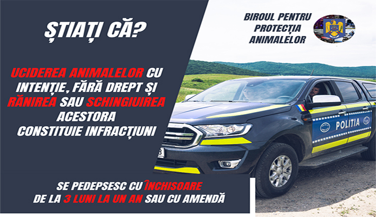 15.04.2022Un bărbat din Dumitra, cercetat pentru săvârșirea infracțiunii de rănirea sau schingiuirea animalelor, a fost reținut pentru 24 de ore, de polițiștii de la Protecția Animalelor