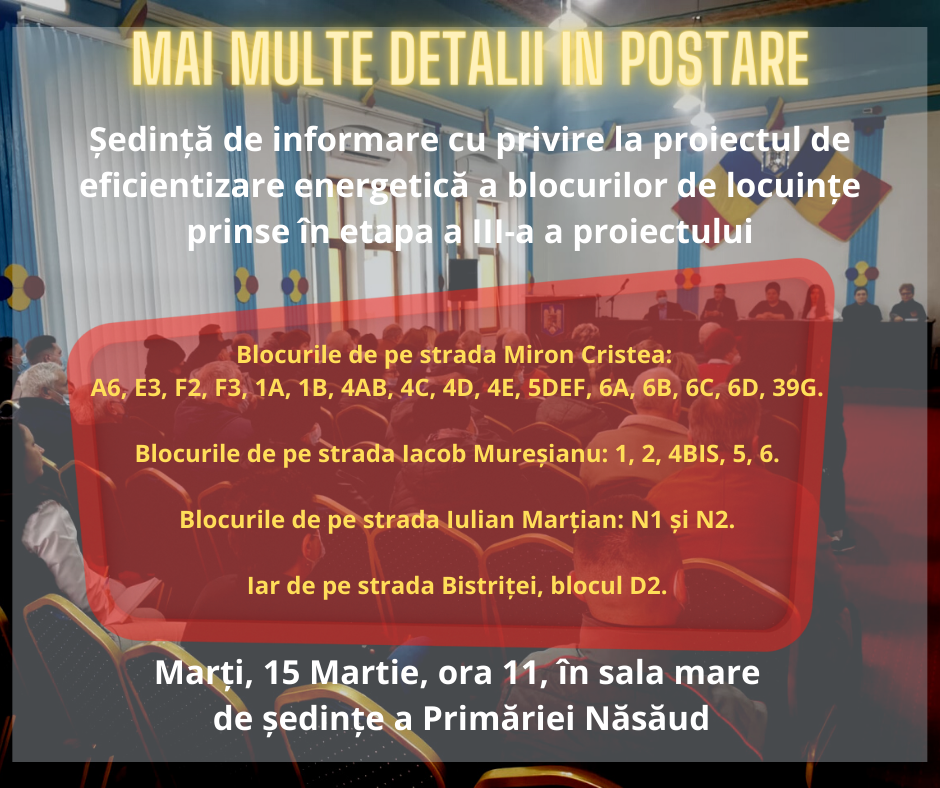 Primăria Năsăud pregătește încă un proiect de reabilitare energetică, de acestă dată pentru un număr de 48 de blocuri! “În prezent colegi...