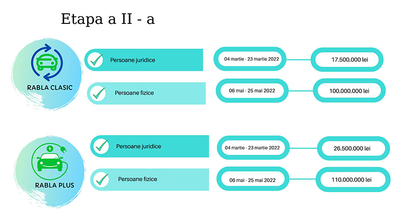 În anul 2022, Programele Rabla Clasic și Rabla Plus se desfășoară etapizat. Pentru prima etapă, lansată în 08 februarie 2022, sumele pentru perso...