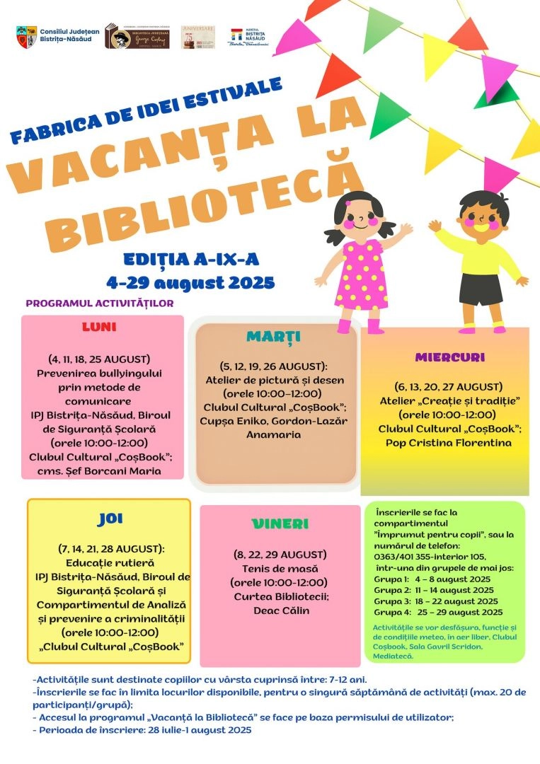 „FABRICA DE IDEI ESTIVALE – VACANȚA LA BIBLIOTECĂ” - Ediția a IX-a: 30 Iunie – 1 August 2025