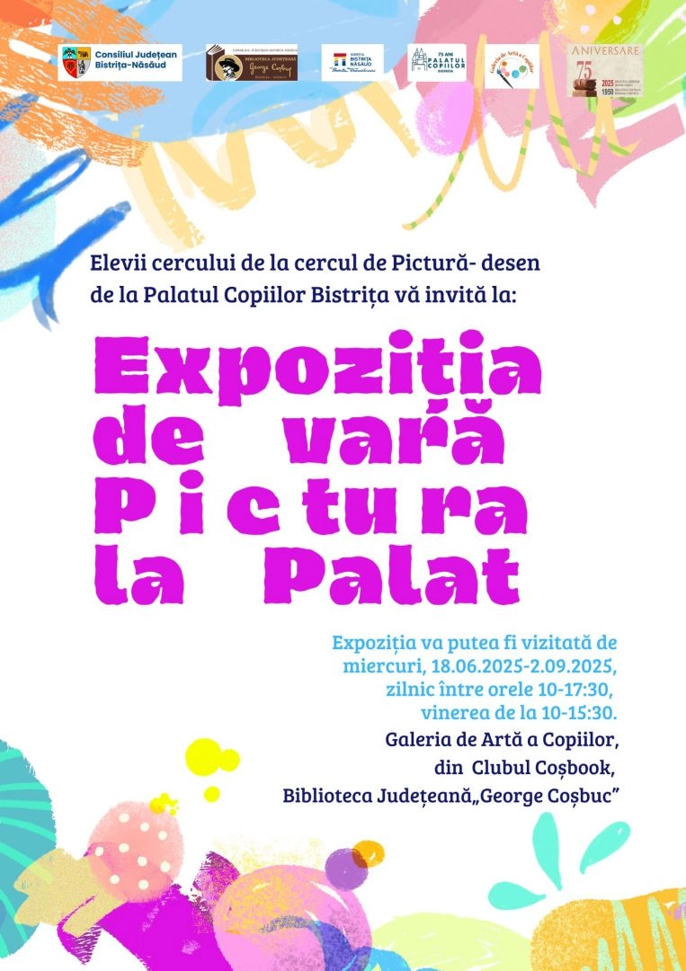Elevii Cercului de Pictură-Desen de la Palatul Copiilor Bistrița vă invită la Expoziția de vară – „Pictura la Palat”, în Galeria de Artă a Copiil...