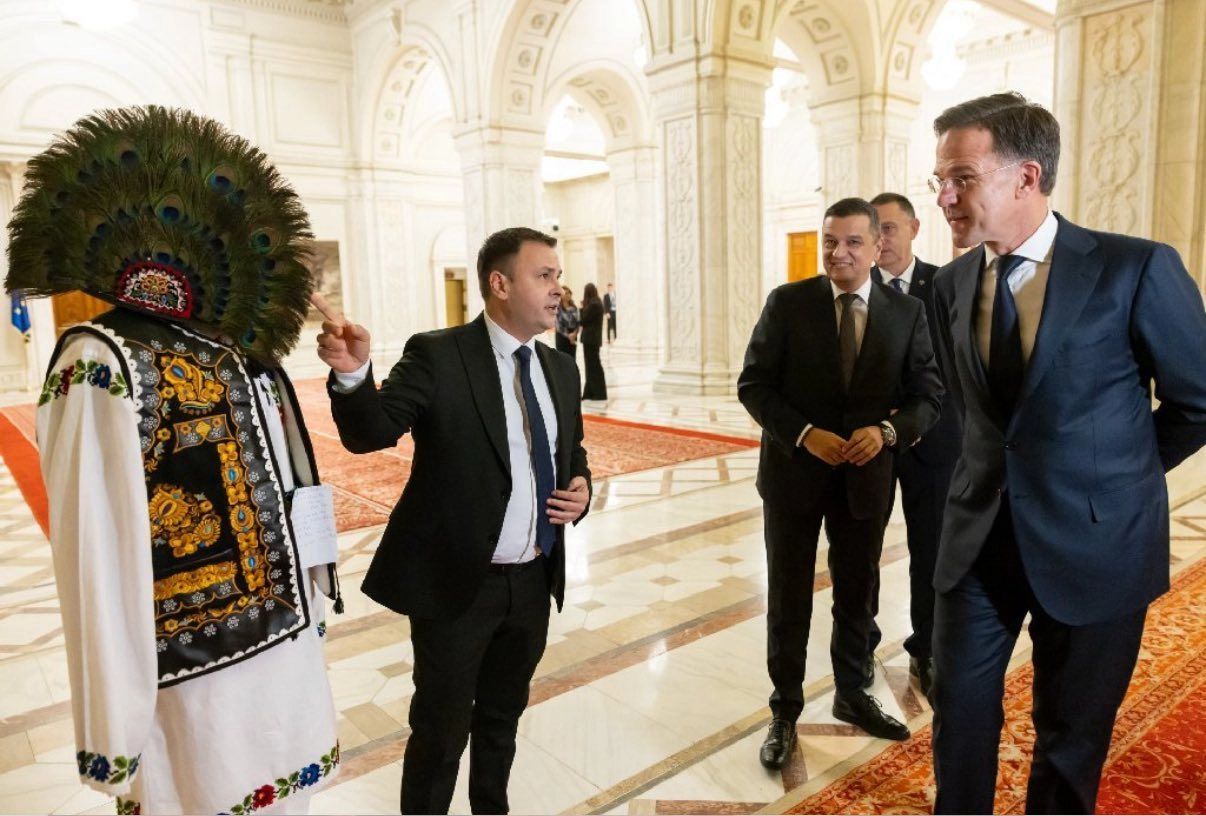 06.11.2025Deputatul Daniel Suciu i-a prezentat lui Mark Rutte costumul cu pană de păun din Bistrița-Năsăud