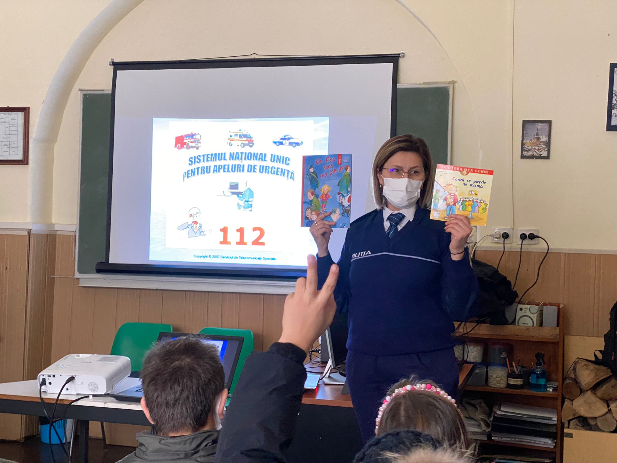 Pentru că în această zi a fost marcată și ”Ziua națională a lecturii” și pentru ca activitatea să fie mai atractivă și pe înțelesul copiilor, polițistul de prevenire le-a citit acestora o carte – ”Ce fac dacă mă pierd”, punând accent pe recomandările preventive specifice – dispariții de minori, apelarea numărului unic 112.