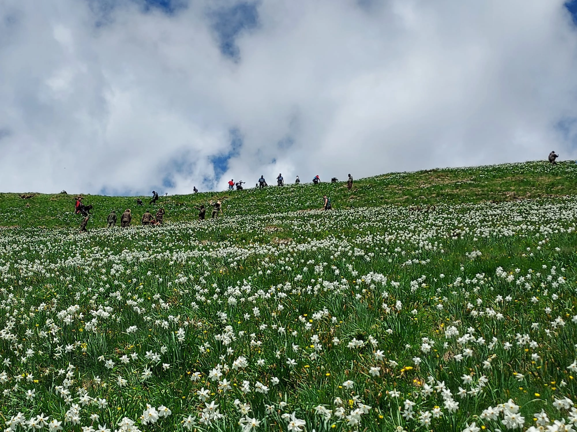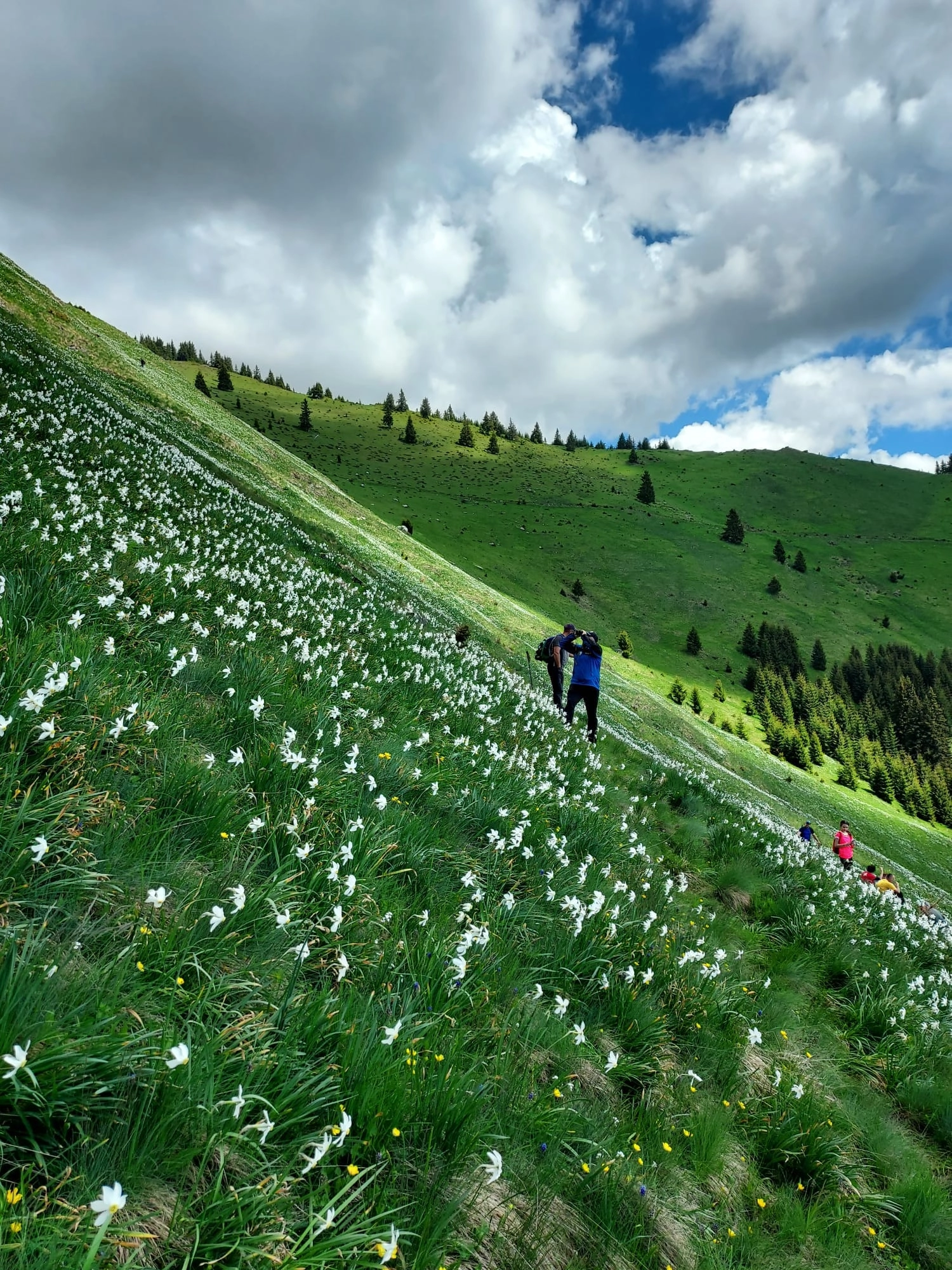 Ziua liberă și vremea frumoasă a făcut ca mulți turiști să parcurgă drumul care duce în Poiana cu narcise din Munţii Rodnei. În aceste zile florile se află în perioada de maximă înflorire.