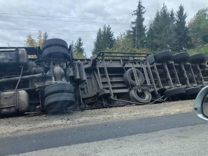 Modulul SMURD intervine pe de DN 17, Dealul Târgului la un accident rutier. Un autotren s-a răsturnat, iar conducătorul auto a ieșit pe cont propriu din autovehicul.