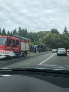 Modulul SMURD intervine pe de DN 17, Dealul Târgului la un accident rutier. Un autotren s-a răsturnat, iar conducătorul auto a ieșit pe cont propriu din autovehicul. Aceasta este conștient, prezintă leziuni ușoare