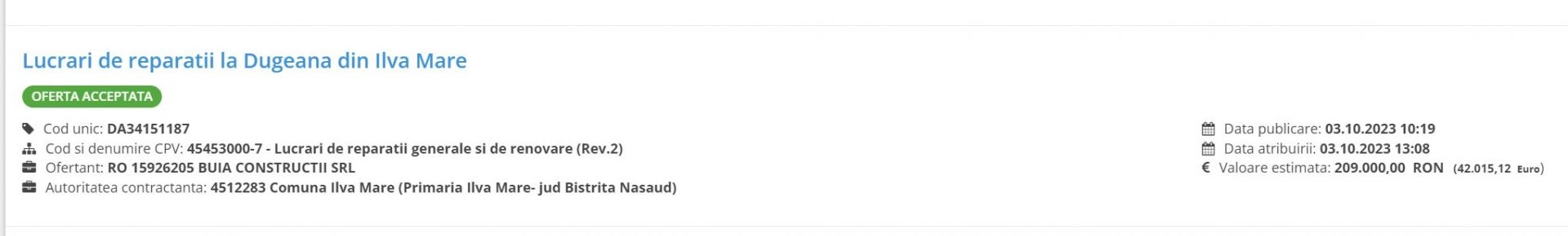 Relaţia dintre primarul comunei Ilva Mare, Octavian Cicşa şi omul de afaceri Teo Buia a golit bugetul comunei, în ultimii, ani, prin lucrări atribuite, prin achiziţie directă, firmei Buia Construcţii SRL. Fără nicio ruşine, fără dezbateri publice şi nici în cadrul Consiliului Local, firma lui Teo Buia a primit sute de mii de lei (miliarde lei vechi) pe diferite lucrări cu dedicaţie.