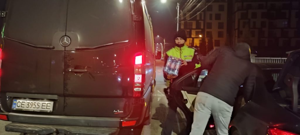 UMANITATE. Polițiștii bistrițeni le-au oferit apă și cornuri ucrainienilor care au tranzitat județul (FOTO)