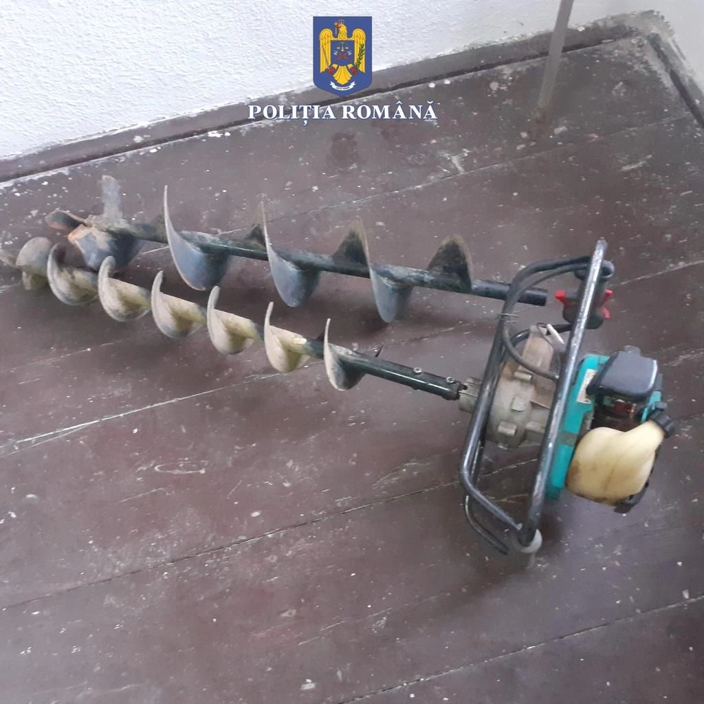 La percheziție, polițiștii au descoperit și ridicat un utilaj vidanjă, un motoburghiu și burghie aferente, bunurile fiind în valoare de aproximativ 12.000 de lei.