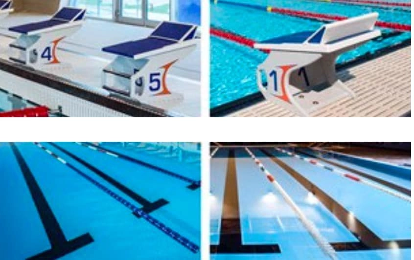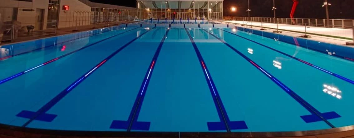 - bazin de înot olimpic pentru competiții de înot și polo pe apă, după standardele FINA (“terenul” pentru competițiile de polo se amenajează în piscina pentru competițiile de înot);