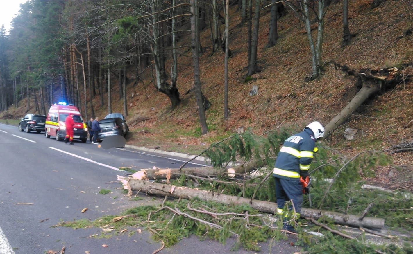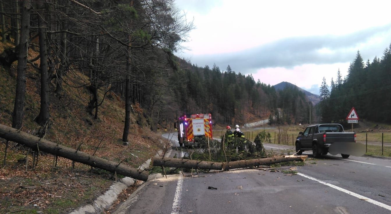 Un copac a căzut peste o mașină! Trei copii au ajuns la spital (FOTO)