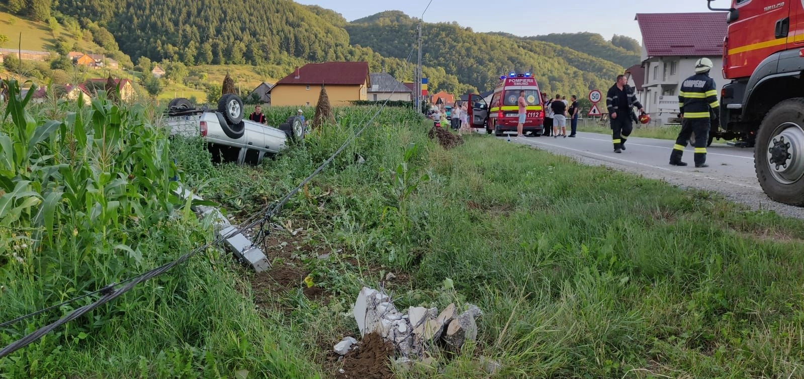 Un tânăr de 23 de ani s-a răsturnat cu mașina în Feldru (FOTO)