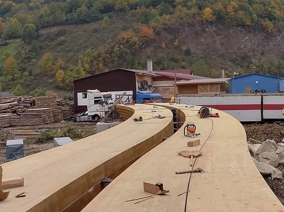 UNICUL pod din lemn stratificat din țară, cel de la Sângeorz-Băi, peste râul Someș, e aproape gata și arată extraordinar