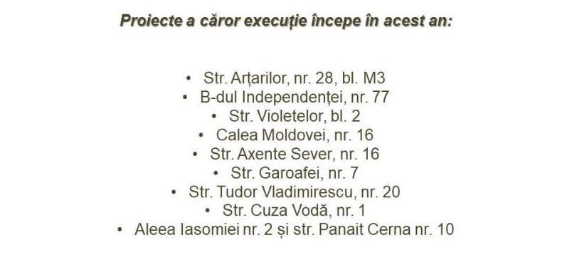 Astfel, începând din acest an, vor fi reabilitate termic următoarele blocuri: